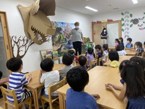Our goals for the event were to learn some dinosaur facts, learn the chorus to “The Dino Dance Song,” and make a special dinosaur lantern.