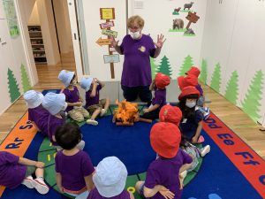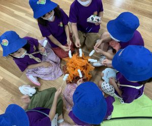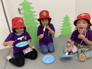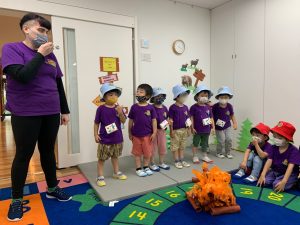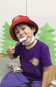 Porcupinesは、Hannah先生と一緒に、アメリカのサマーキャンプでよく行われる、Repeat after me songを発表してくれました。