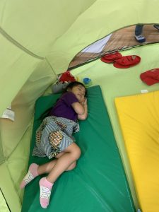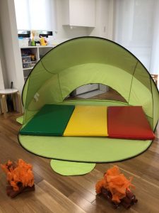 本日のイベントは、”Indoor Camping” 、いつものお教室が、キャンプ場になりました!