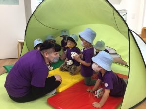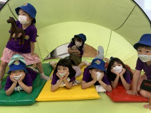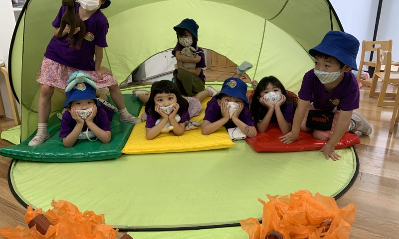 本日のイベントは、”Indoor Camping” 、いつものお教室が、キャンプ場になりました!