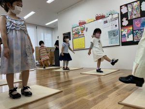 次はみんなが挑戦してみます。全員初めてのタップシューズに、”These shoes are so cool!”と嬉しそうです。