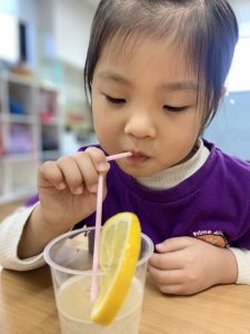 本日はこのレモンを使って、お誕生日のSpecial drinkを作ります!レモンからビタミンCをとって、風邪に負けない体を作りましょう!