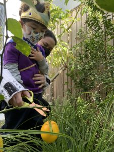スクールの庭のレモンの木に、大きなレモンが実りました!🍋