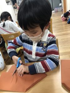 ハサミを使って家の形に…できるかな?