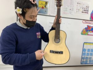 楽器には、本当に沢山の種類があるのだと分かったみんな。同じStringed instrumentでも、それぞれ色んな音色でした。