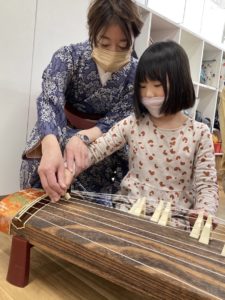琴は実際に見るのは初めて。音を聴くのも初めての子が大半でした。それを触ってみる事が出来たのはとっても貴重な体験でした。