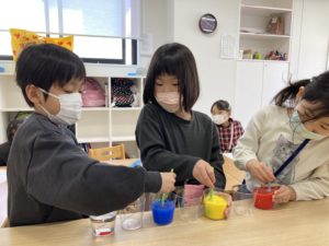 K3のみんなはしっかりと話しを聞けますし、いつもみんなで協力して進められますので実験もスムーズに進み大成功でした