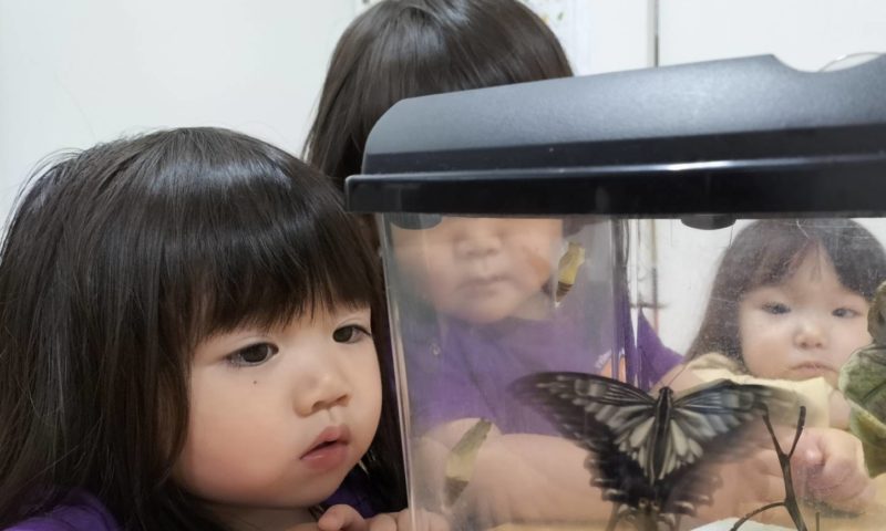 1か月前程から観察していたちょうちょの幼虫が、さなぎを経てついにちょうちょになりました!!