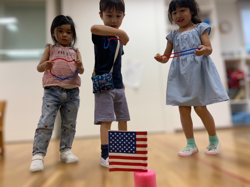 Today, was our July 4th American theme! We began by reviewing some things we knew about America, including the flag, people we knew from America and foods. The children showed how well they could relate to people being from a different place and we discussed all of the different nationalities even amongst our teachers! We looked at culture and how we can identify the cultural features of Japan!