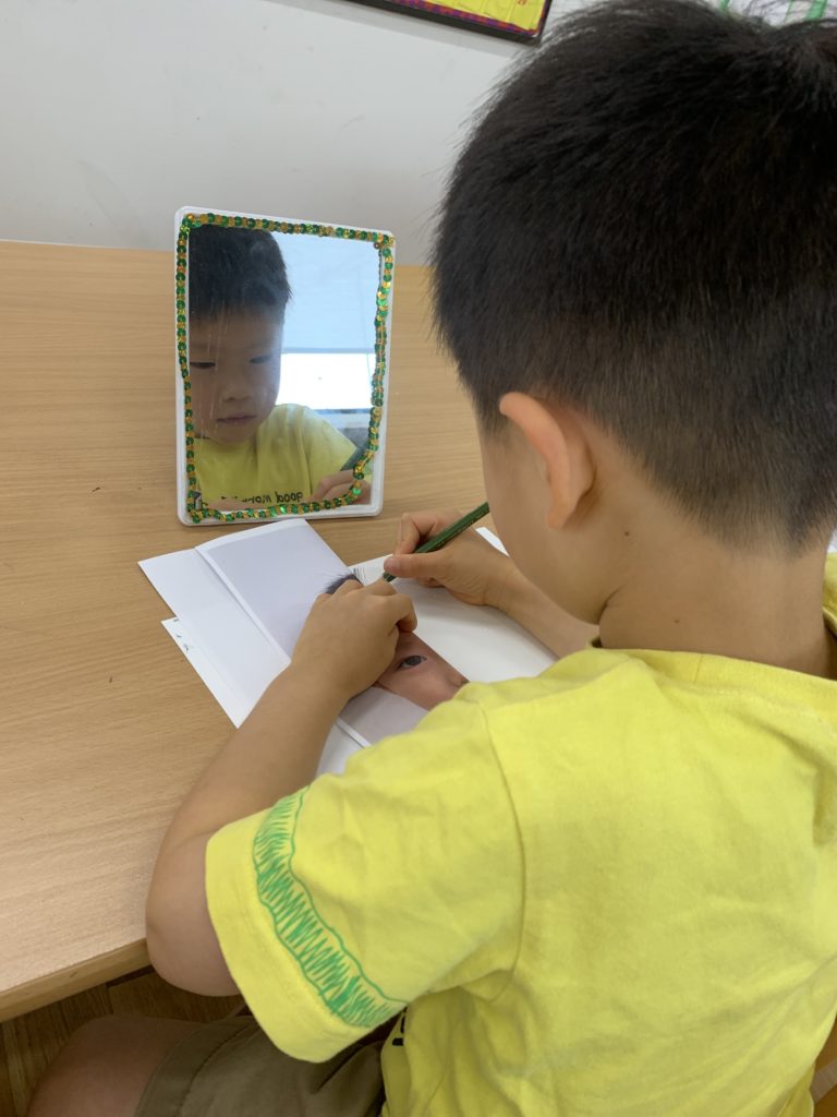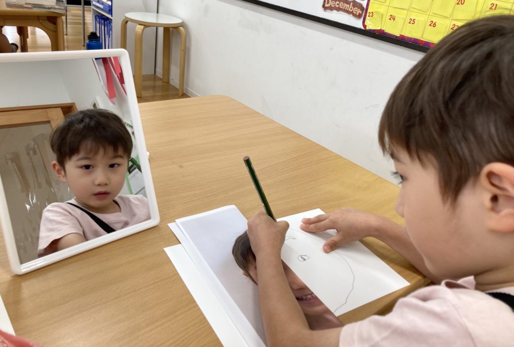 Today we started a new art theme for our K3 class! The focus was…..us!