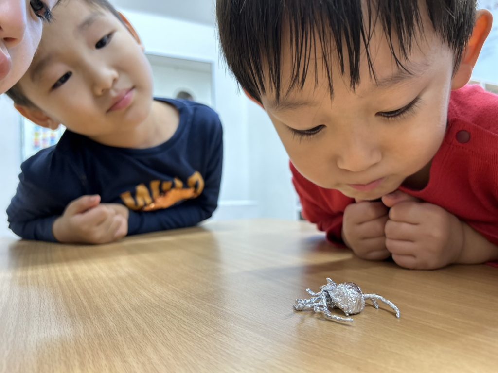 In the spirit of creativity, we transformed simple aluminum foil into shiny, silvery spiders. The gleam in the students’ eyes matched that of their crafted creations. Each spider, with its unique twist, became a proud token of their imagination.