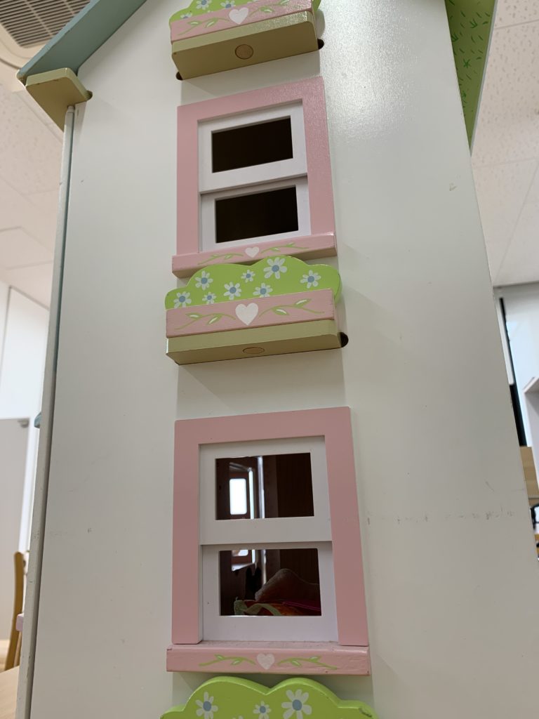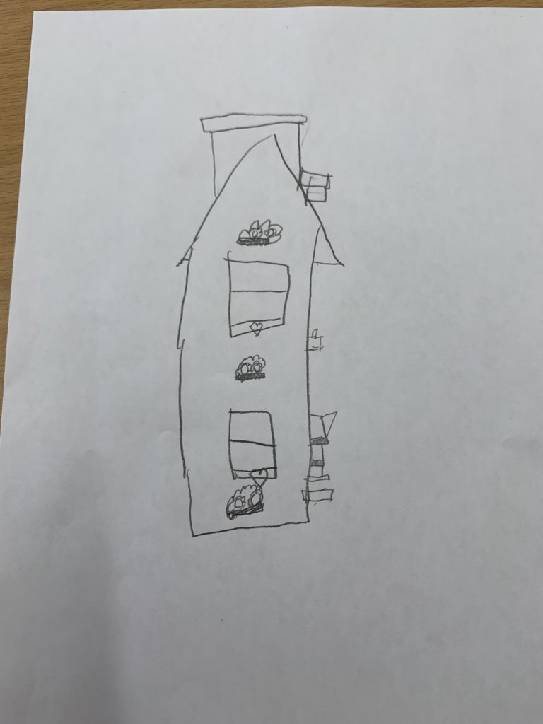 The class had a very detailed toy house that was the model of our art today. Students sat on opposite sides and tables to see different angles of our toy house.