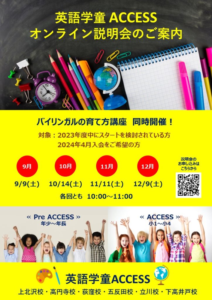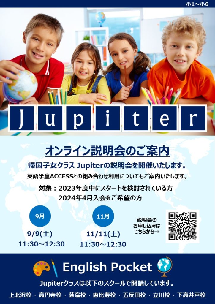 当校では、英語学童ACCESS, 帰国生クラスJupiterの説明会を定期的に実施しております。
