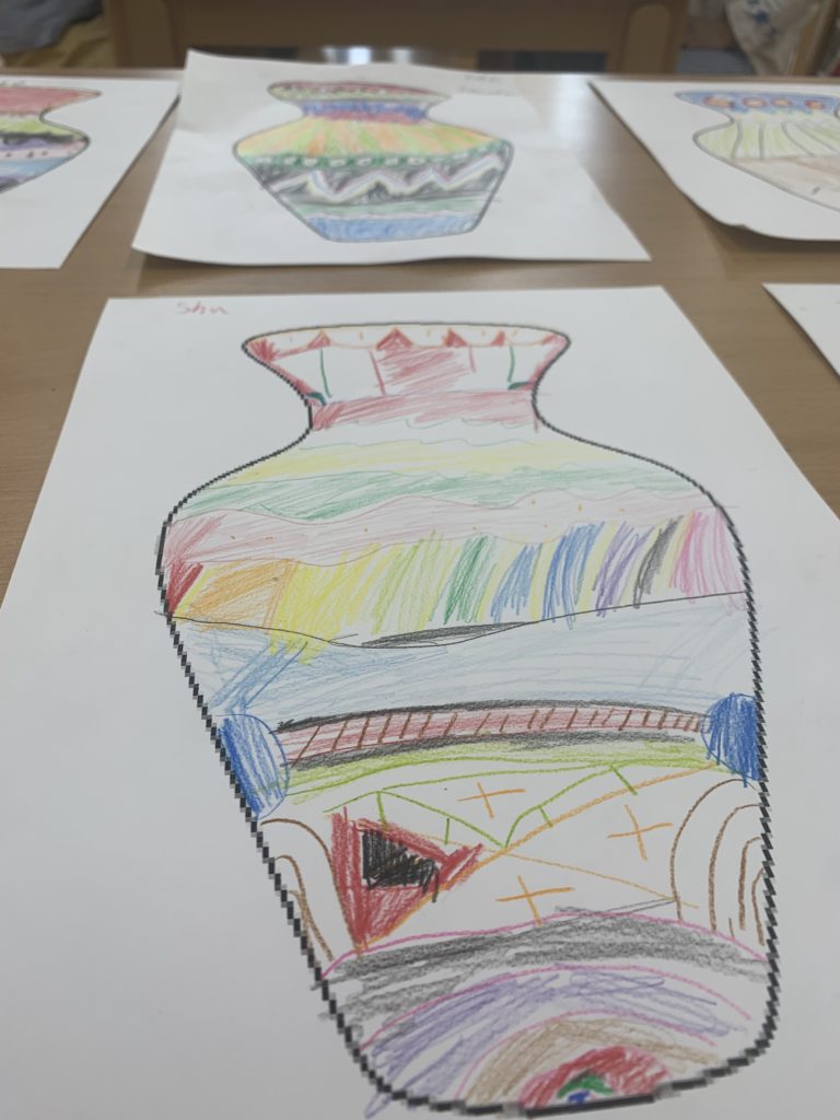 This month’s theme is African Art. Students looked over different styles and designs of African Art around the world.