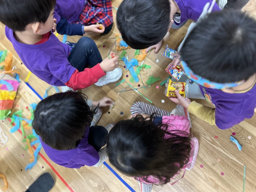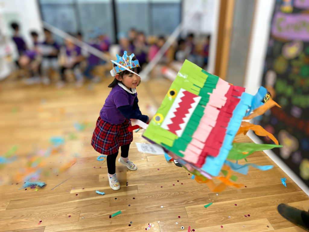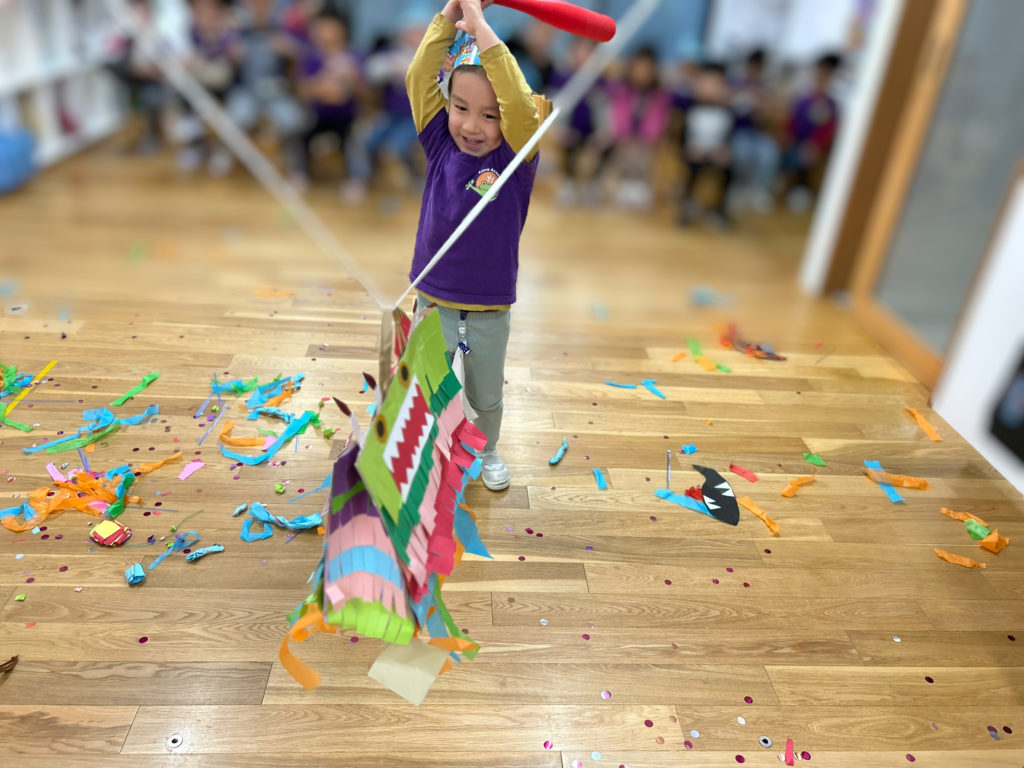 どんなお菓子が中に入っているのか、piñataが壊れるまでわからないのも、ワクワク感が増しますね!