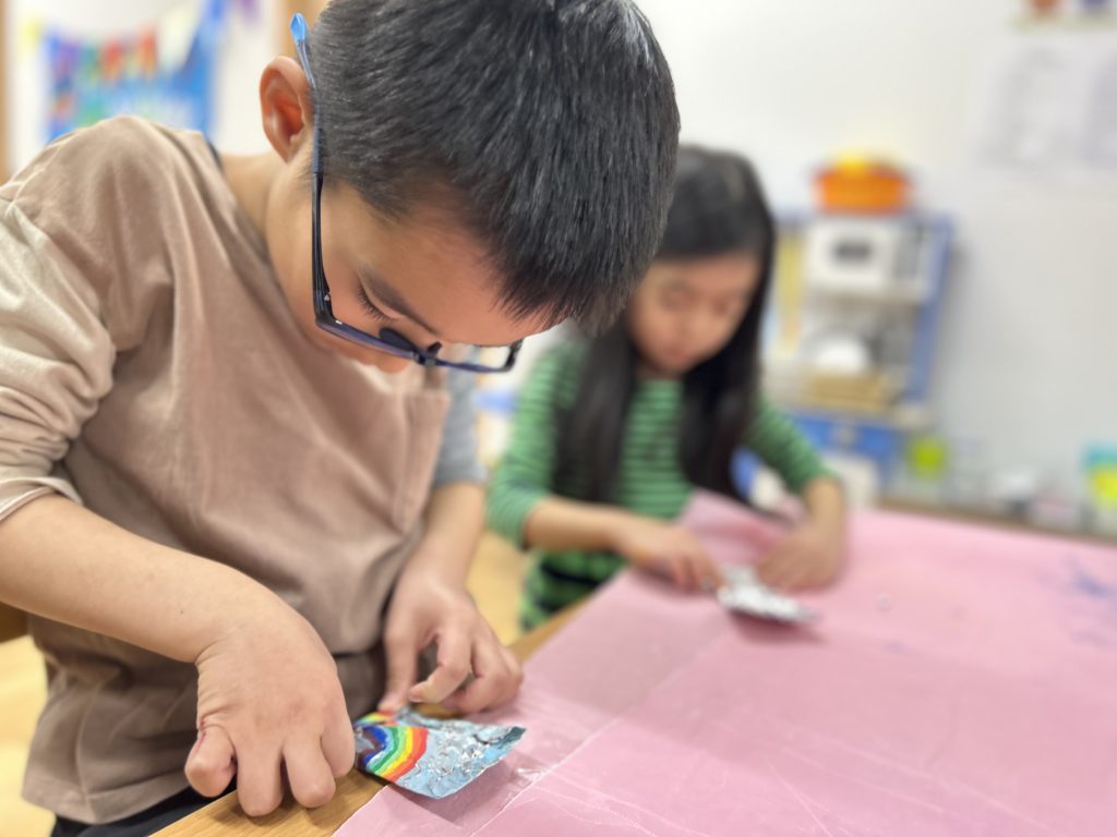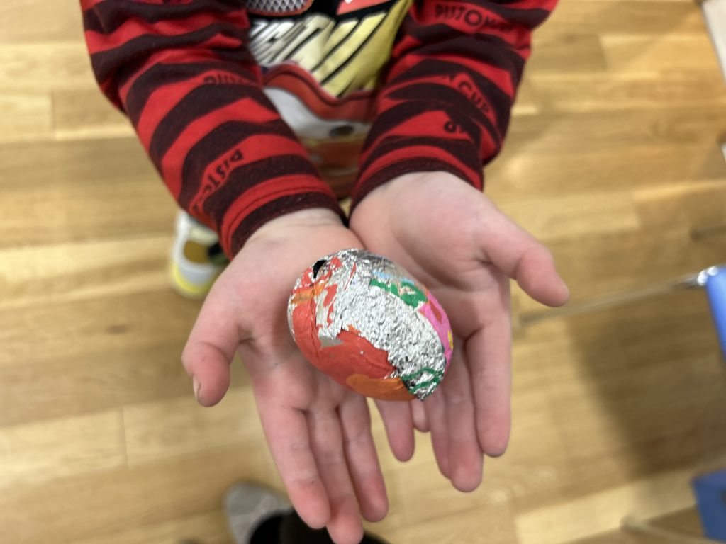 Our young scientists and artists were tasked with creating “magic motion eggs.” Armed with aluminum foil and marbles, they set out to craft these intriguing and captivating objects.