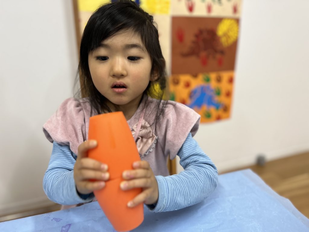 As the cups were opened, a delightful surprise awaited them – egg-shaped balls with fascinating pictures. These balls moved in intriguing and unexpected ways when rolled, much to the delight and amazement of the children.