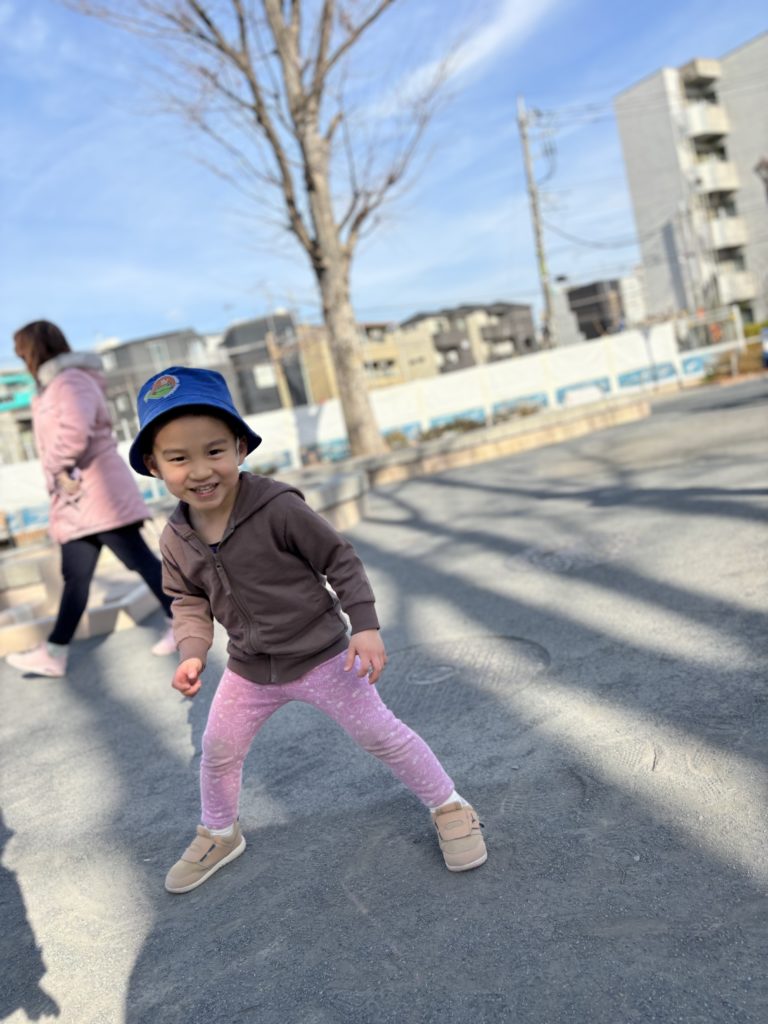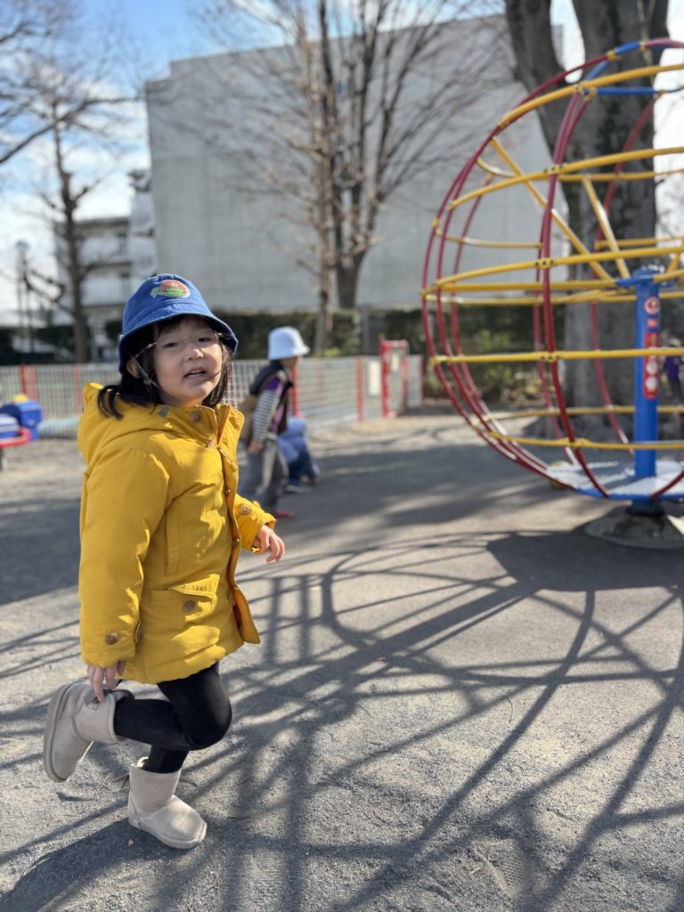 沢山走って身体が温まったみんな。ジャケットを脱ぐ子もいました。冬の外遊びは、他の季節よりも体力がつき、身体能力の発達も促します。