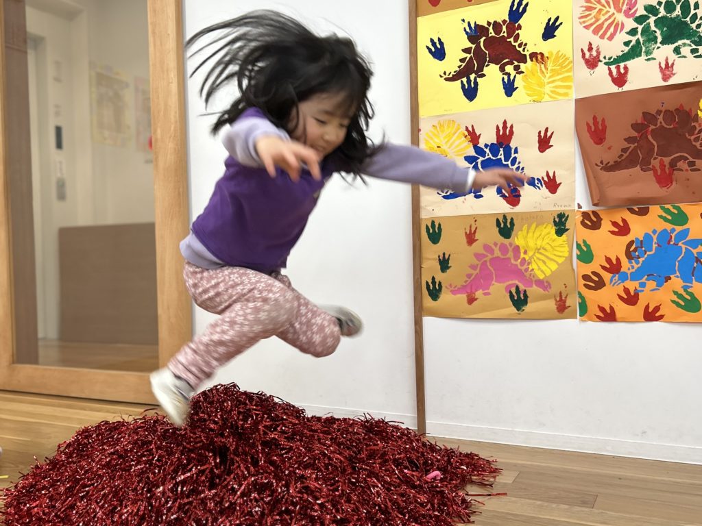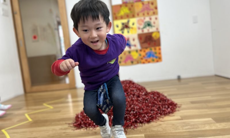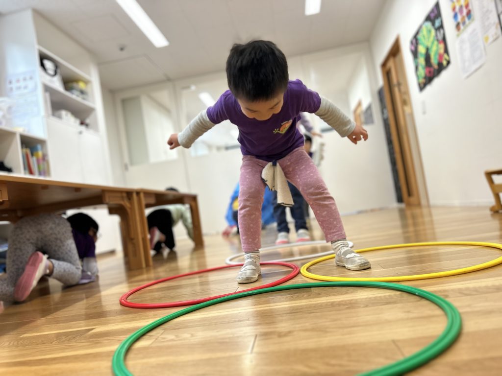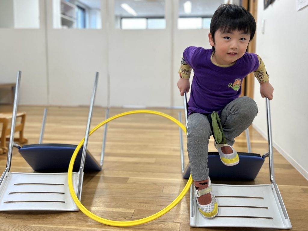 2〜3歳ではまだ難しかった片足飛び、年少さんになると上手に出来るようになりました!