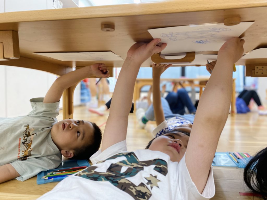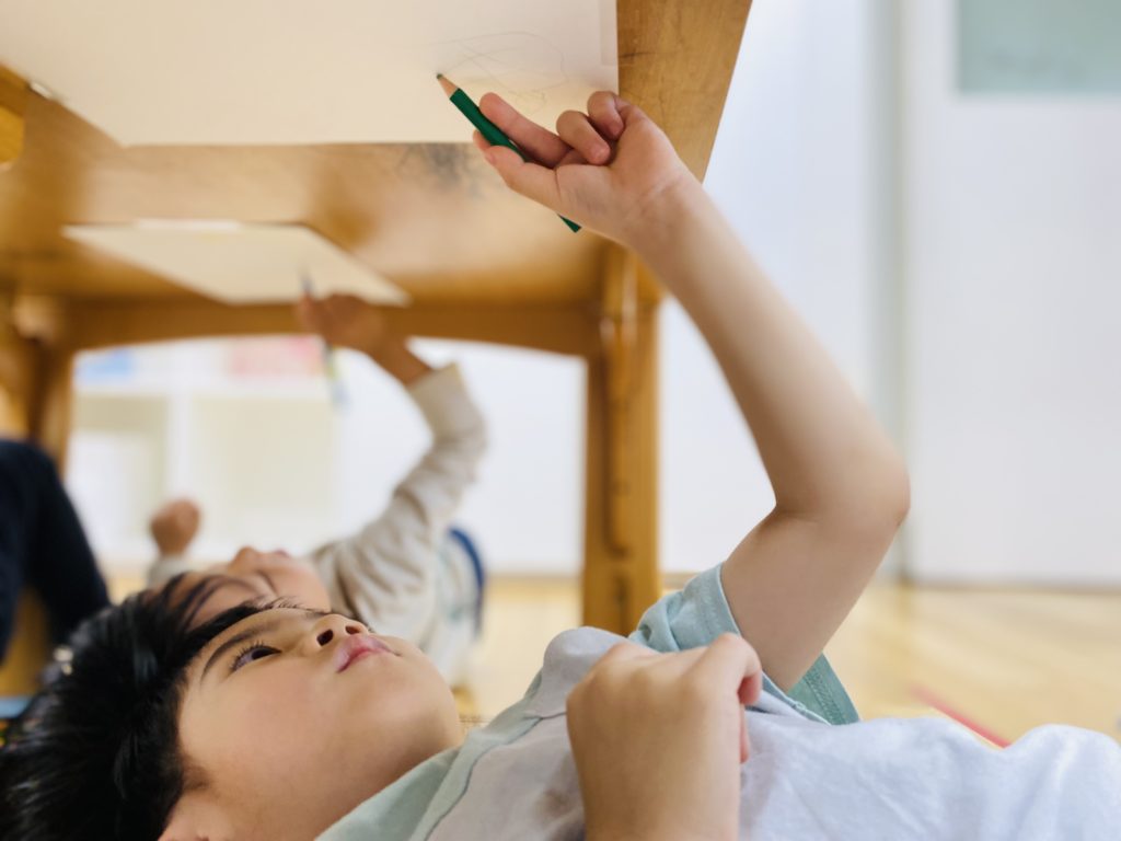 For today’s activity, we drew any pictures we wanted while lying upside down