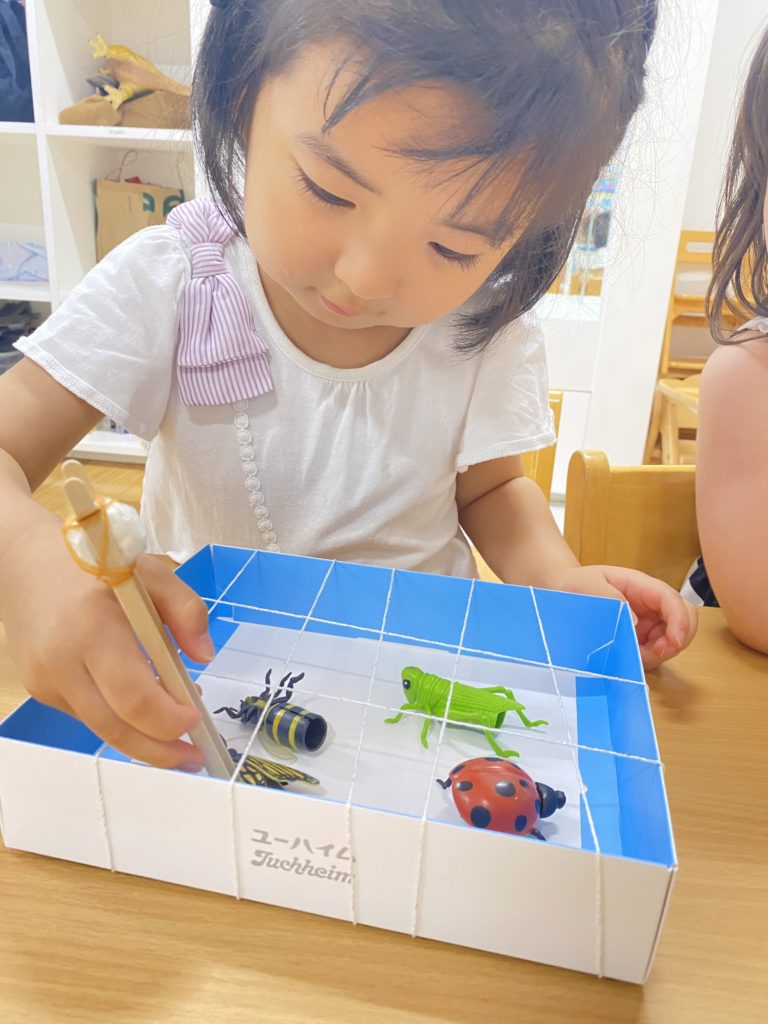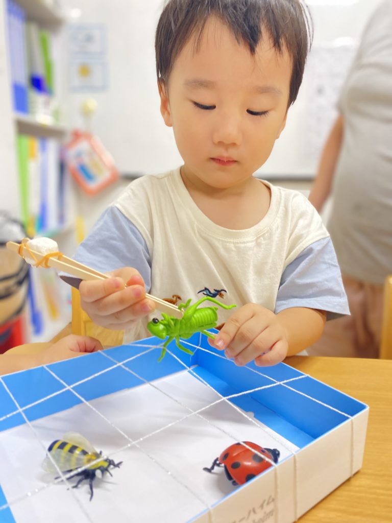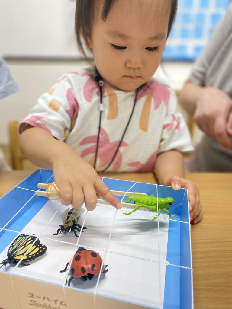 アクティビティでは、おもちゃの虫を使って「虫レスキューゲーム」に挑戦!