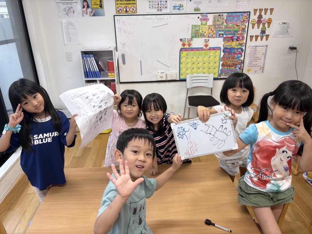 今日は「もし虫がいなかったらどうなるの?」というテーマでお話をしました。ハチやチョウのような虫たちが花の花粉を運んでくれるから、果物や野菜が育つことを知った子どもたち。