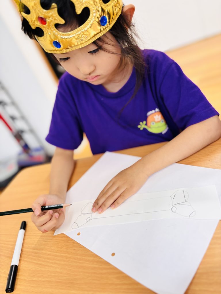 模様が左右対称になるように描くよう、まずは鉛筆で下書きし、その後ペンで色付けしました。