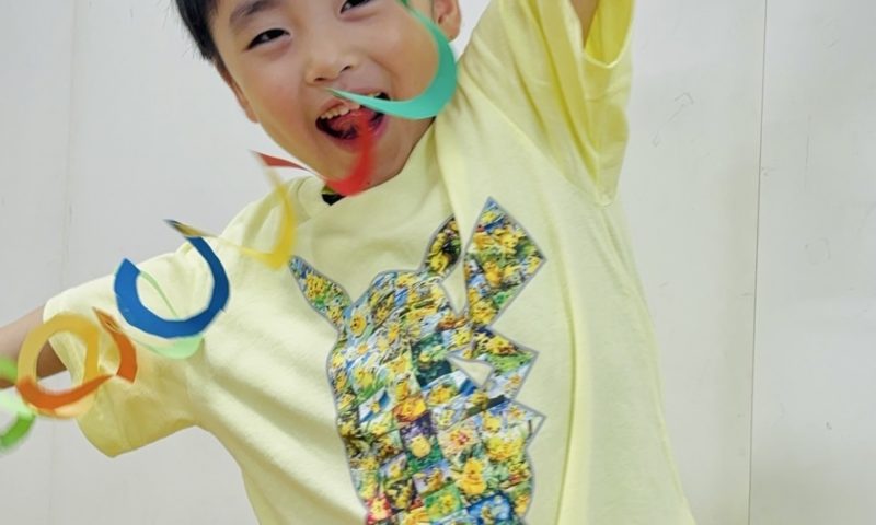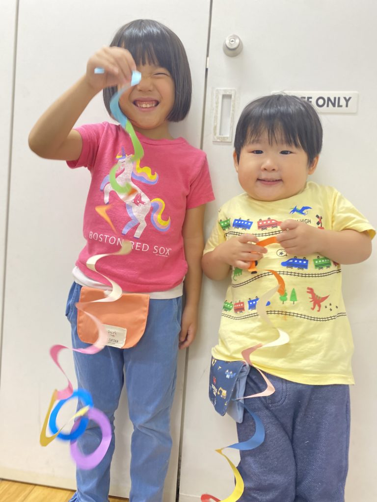 今回のArtの時間では、子どもたちと一緒に「Colorful Ring」という、紙で作る楽しいスリンキー風のおもちゃを作りました!