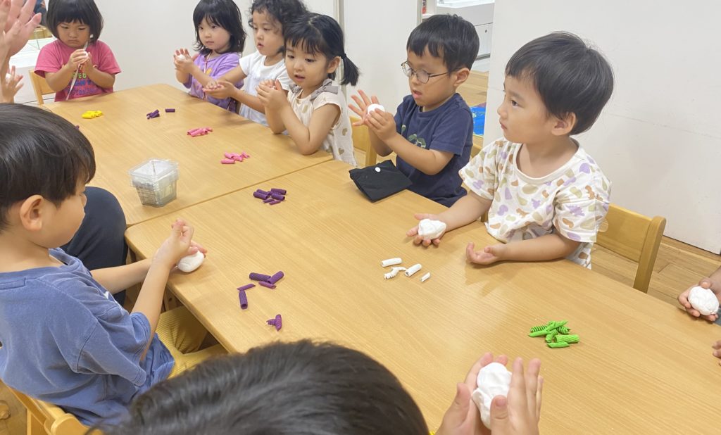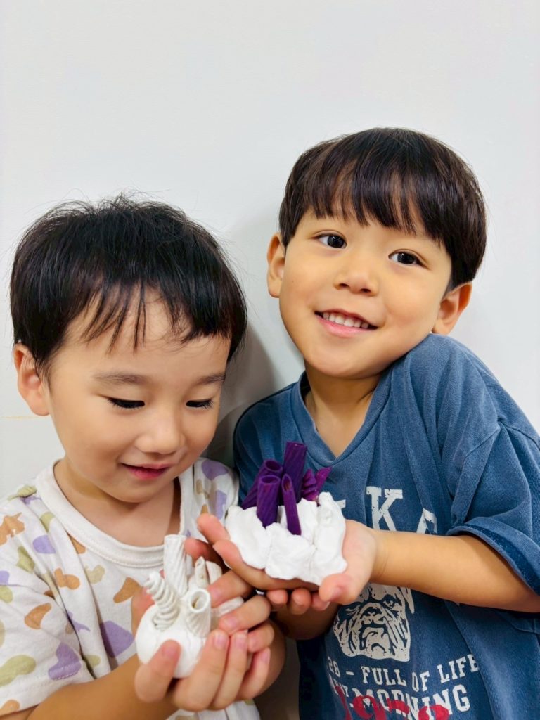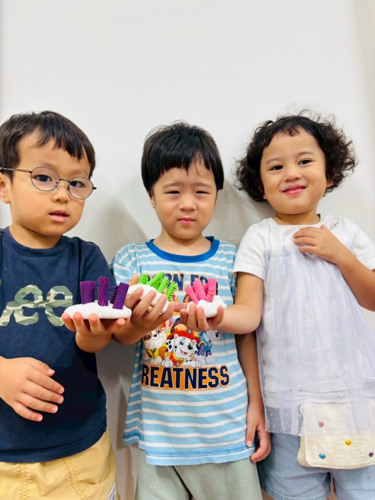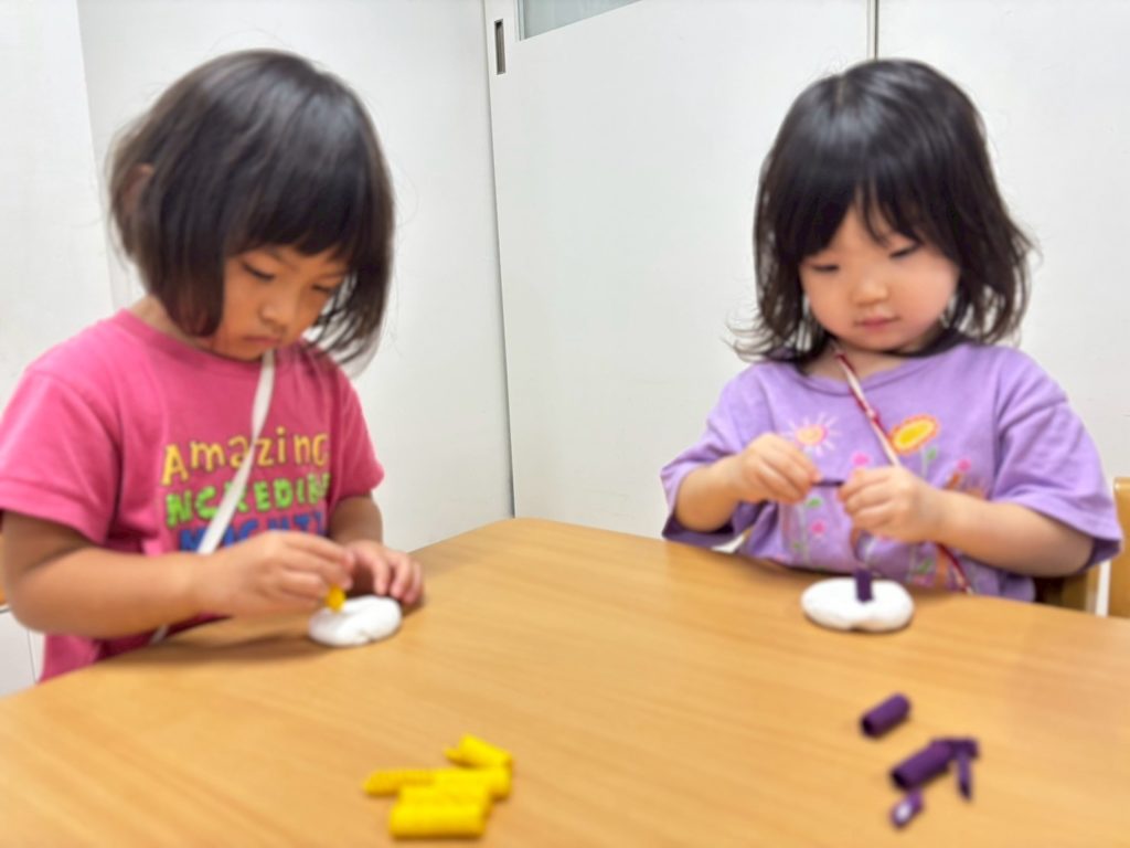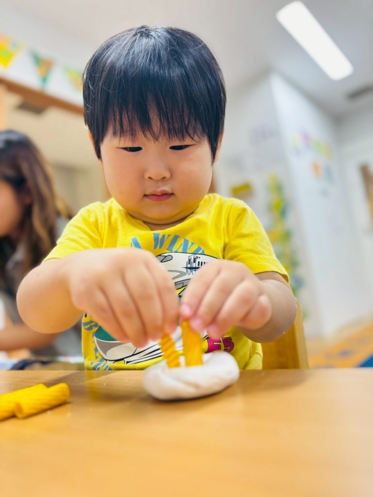 次はいよいよサンゴ礁。直感でどんどんパスタを差し込んでいく子もいれば、「どの色をどこに立てようかな?」とじっくり考えながら作る子もいて、それぞれの個性が光っていました😊