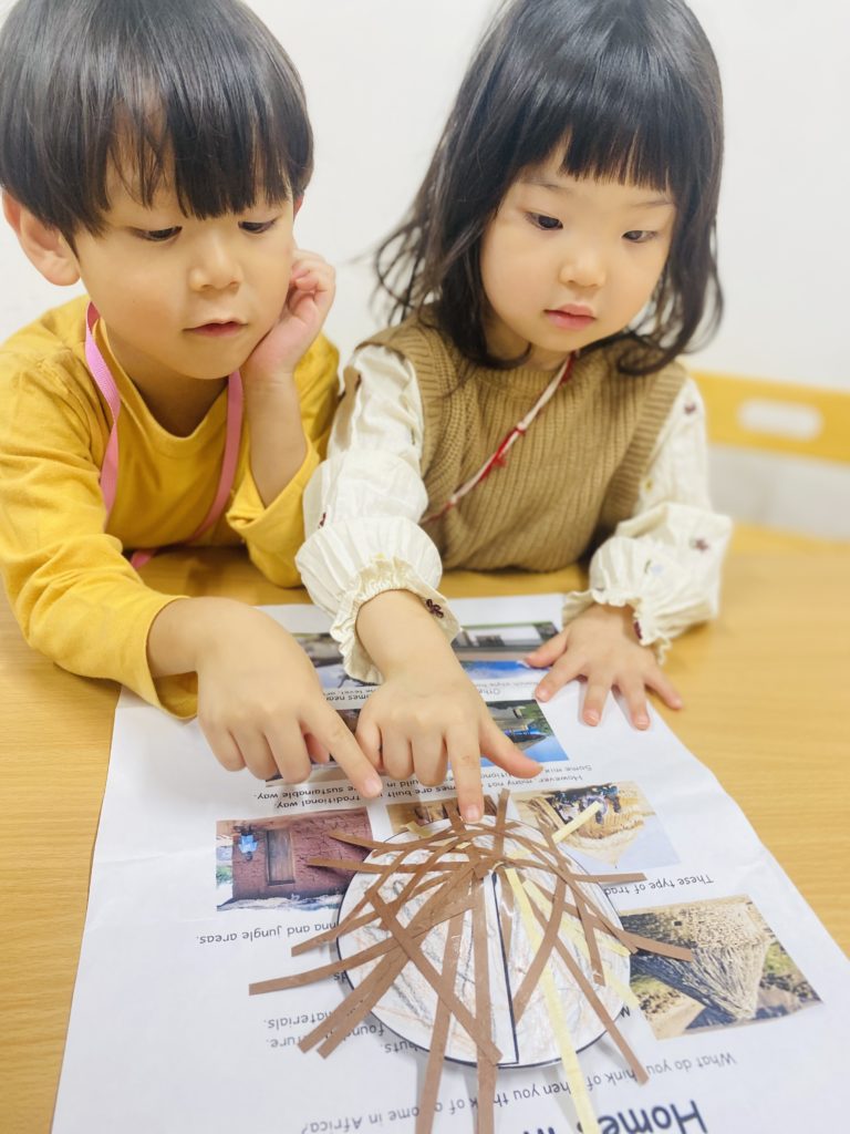 学んだあとは、みんなでアフリカの家を作りました。