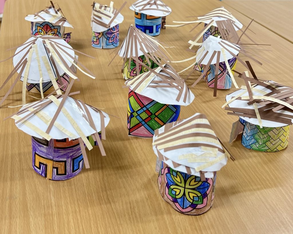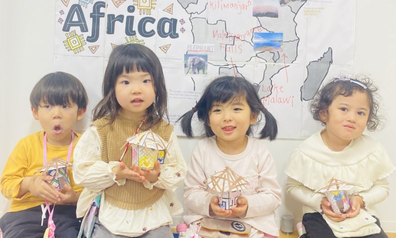 カラフルな色や模様を取り入れて、思い思いの“アフリカの家”をつくりました。