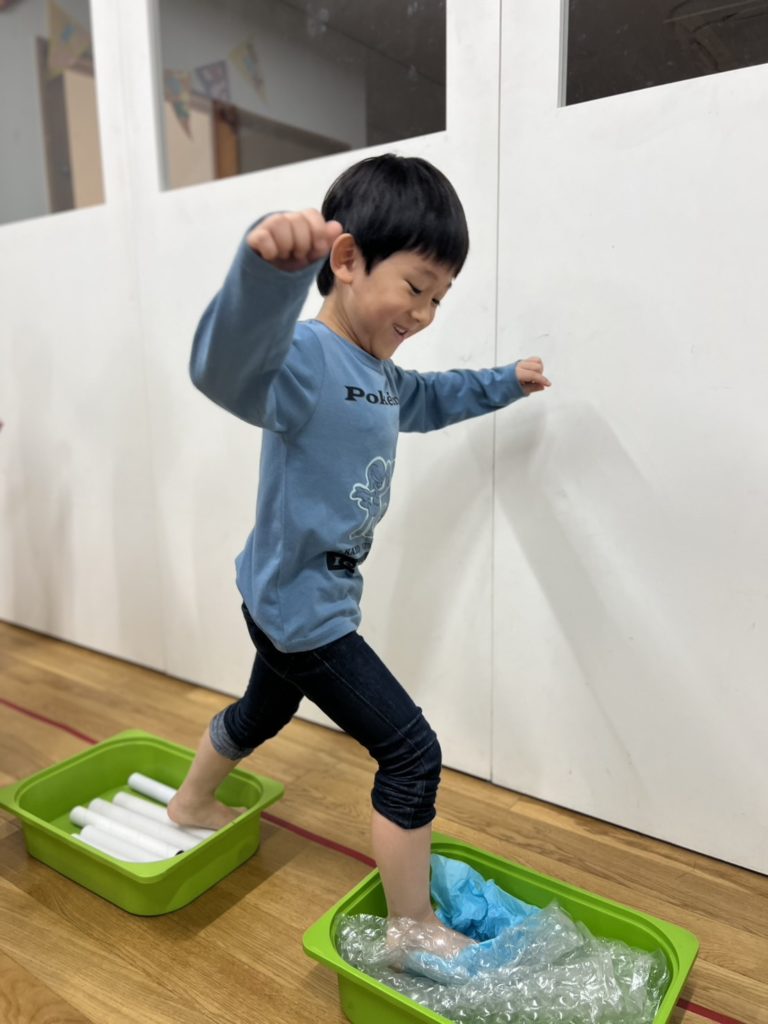 リサイクル品の上を裸足で歩いたら、ちょっと痛かったり、ゴツゴツしていたり、、、。