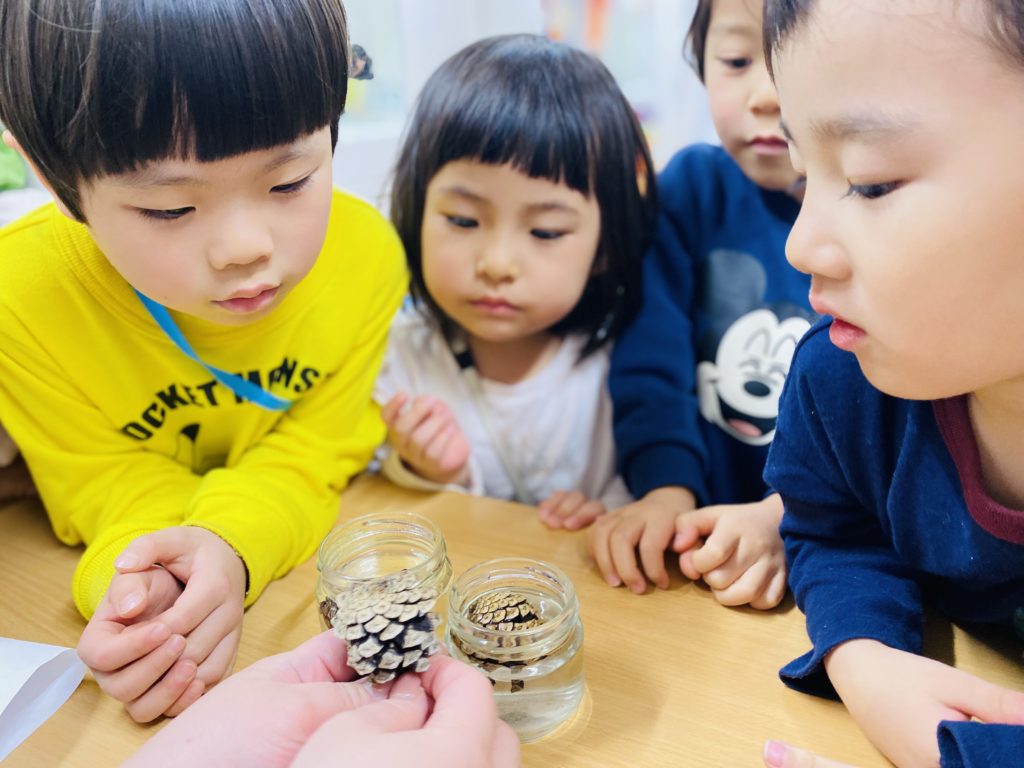 今回は、冬の森にぴったりな 松ぼっくりの実験 をしました!