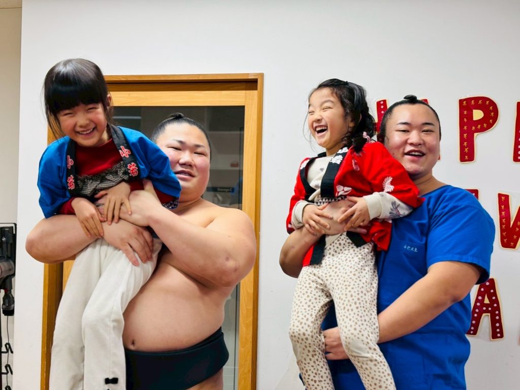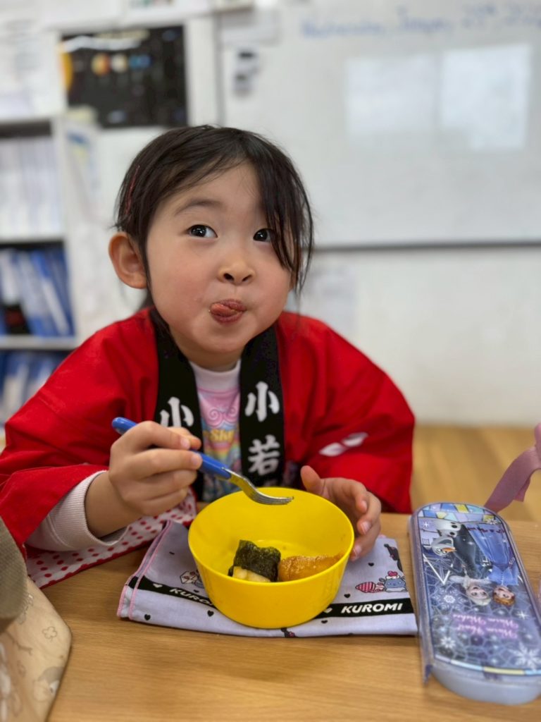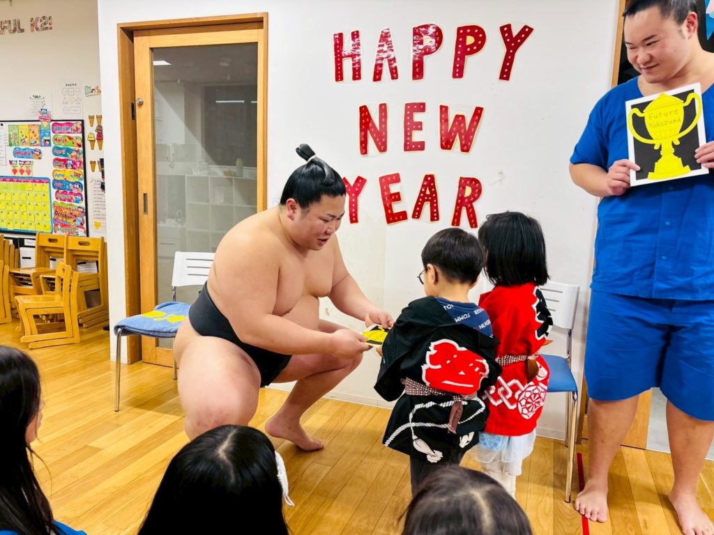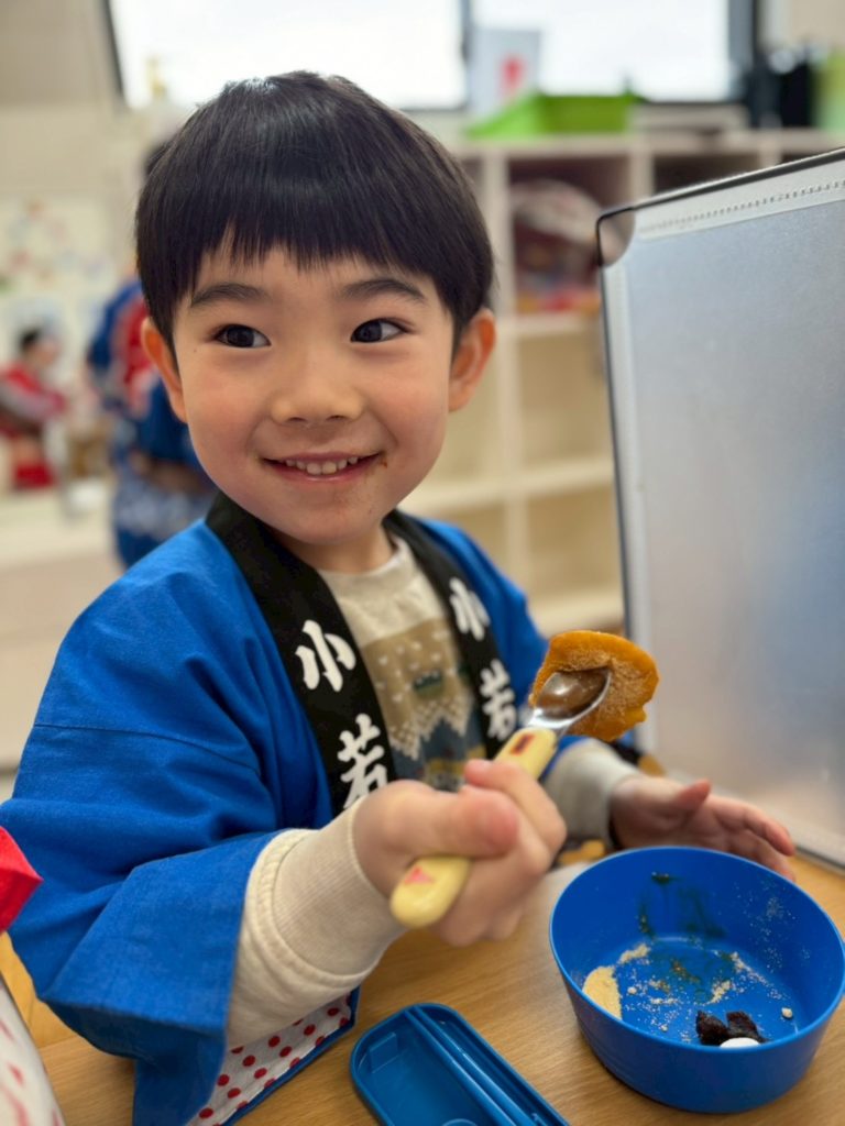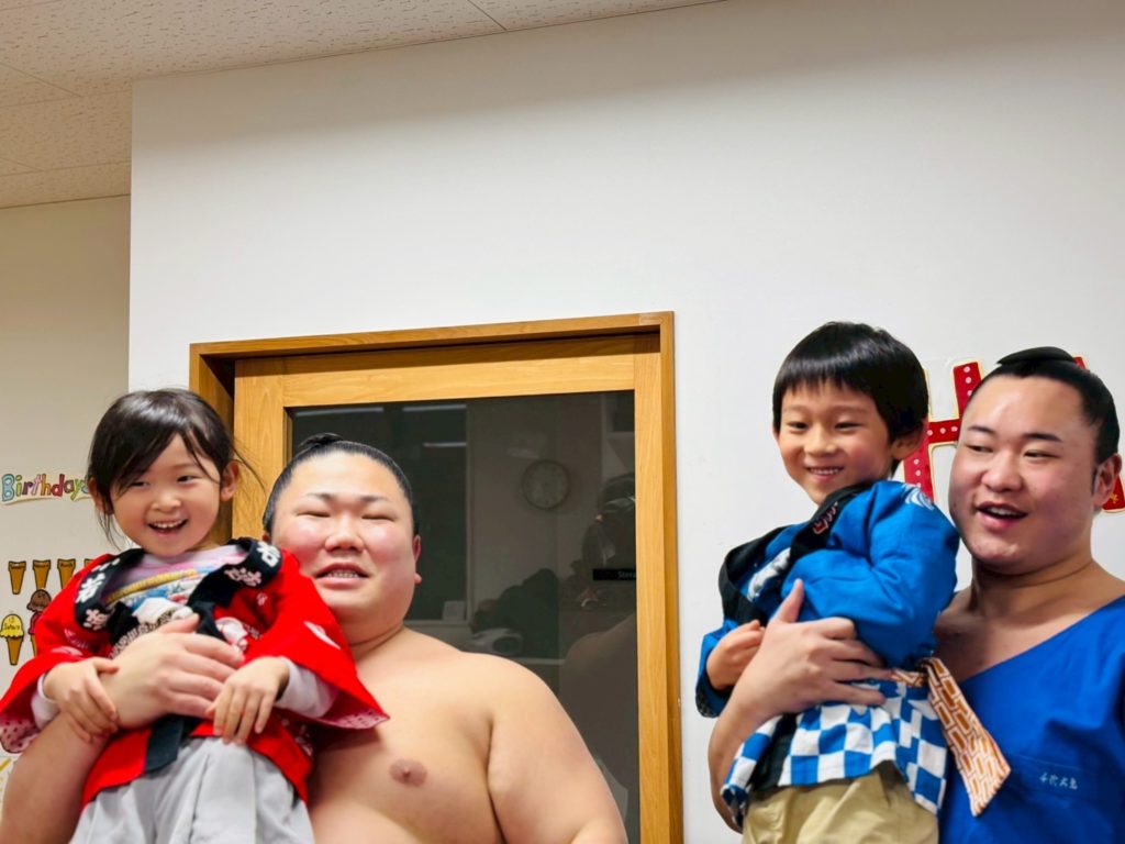 大きな体で力強くお餅をつく姿に、子どもたちはじっと見入っていました。