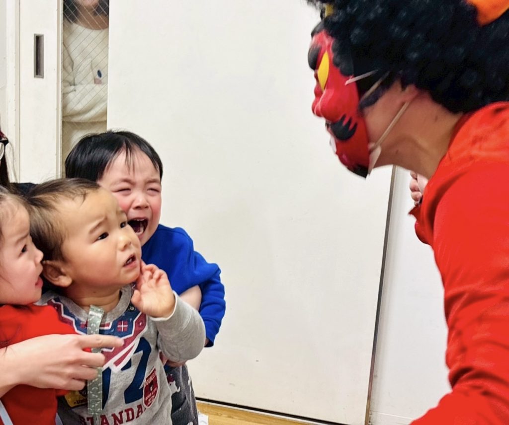 P0〜2の子どもたちは、鬼が見えた瞬間から涙がぽろぽろ。