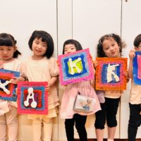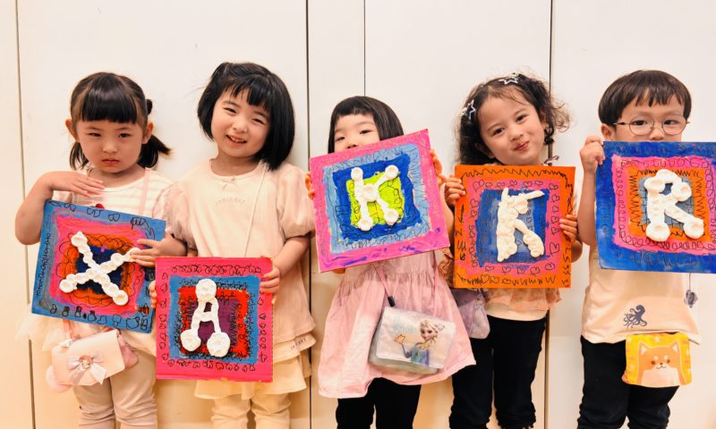 Then, we molded clay in the shape of the first letter of our name. We glued the clay to our painting.